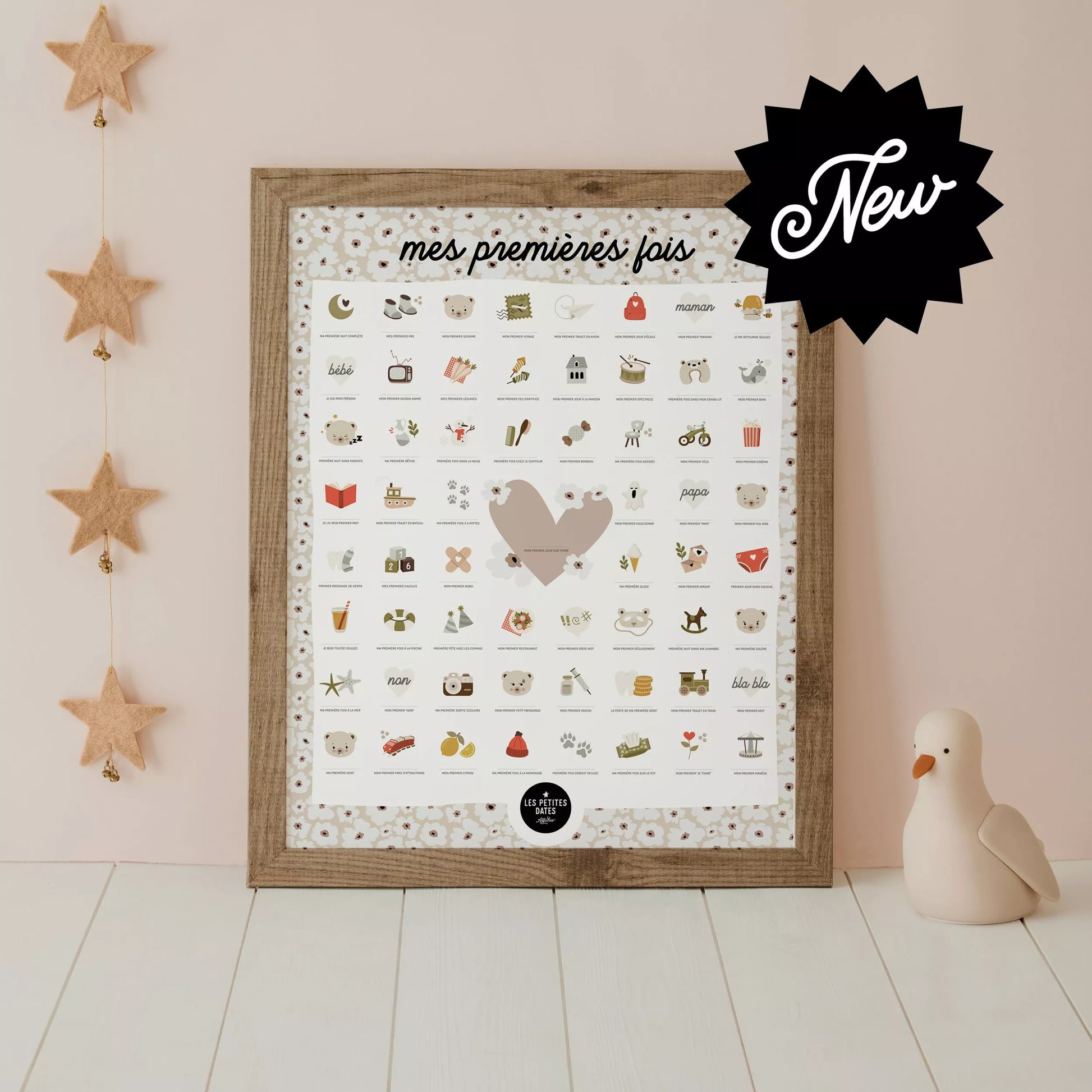 Entre le "premier jour sur terre" et "mon premier trajet en avion"... L’affiche comprend 61 premières fois pour accompagner la vie d’un enfant de 0 à 7 ans ou plus !