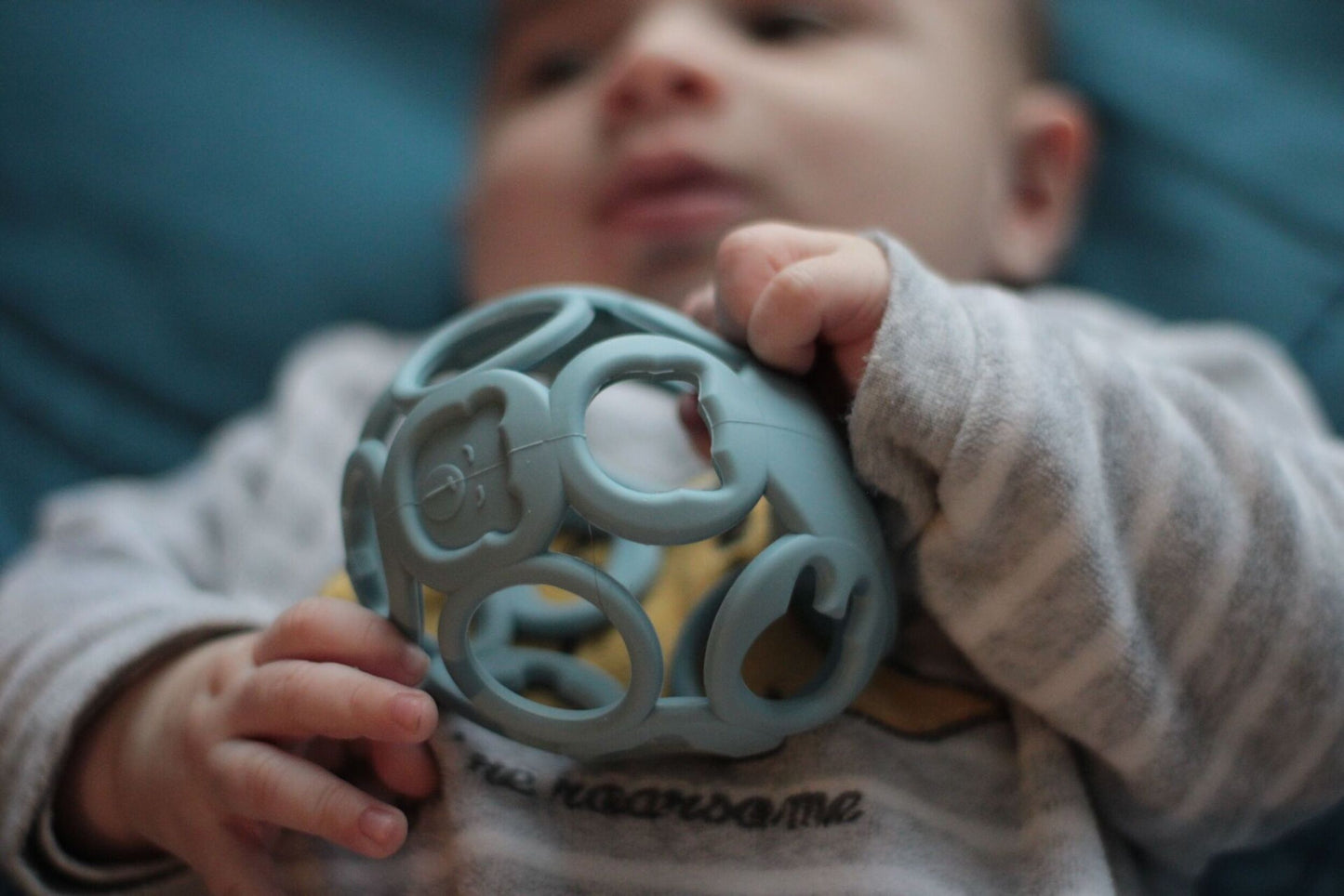 Cette balle robuste et flexible est vraiment un incontournable pour entraîner la motricité de votre tout-petit ! Elle est composé à 100% de silicone de qualité alimentaire. Les bords fins et le poids léger le rendent facile à saisir et aussi très agréable à mordre. La forme part dans tous les sens, pour que votre enfant reste captivé.