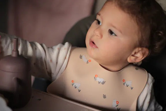 Le bavoir en silicone, grâce à sa matière, garantit un nettoyage facile et offre une grande souplesse à votre bébé.
