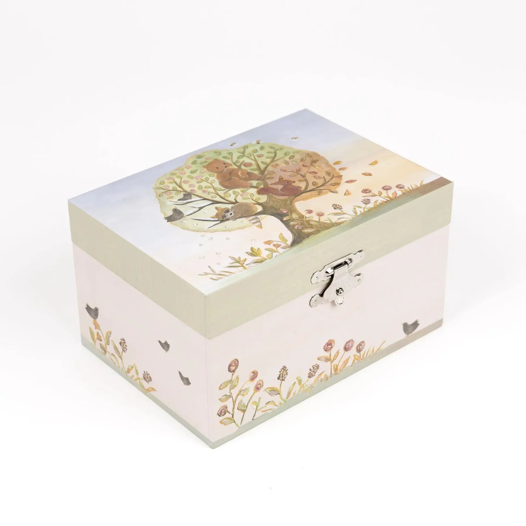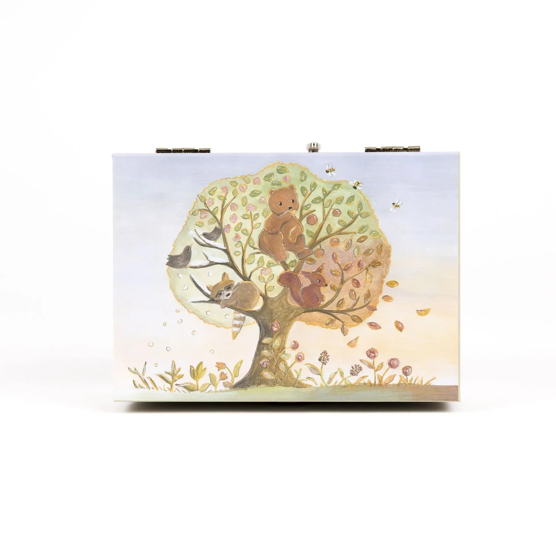 Illustrée de scènes charmantes pour chaque période de l'année, cette boîte à bijoux musicale s'ouvre sur une douce mélodie et un ours qui danse au lieu d'une ballerine classique.