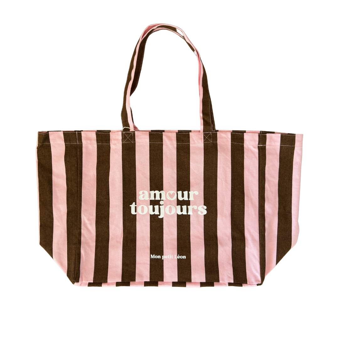 Cabas AMOUR TOUJOURS - Rayé Rose/Marron