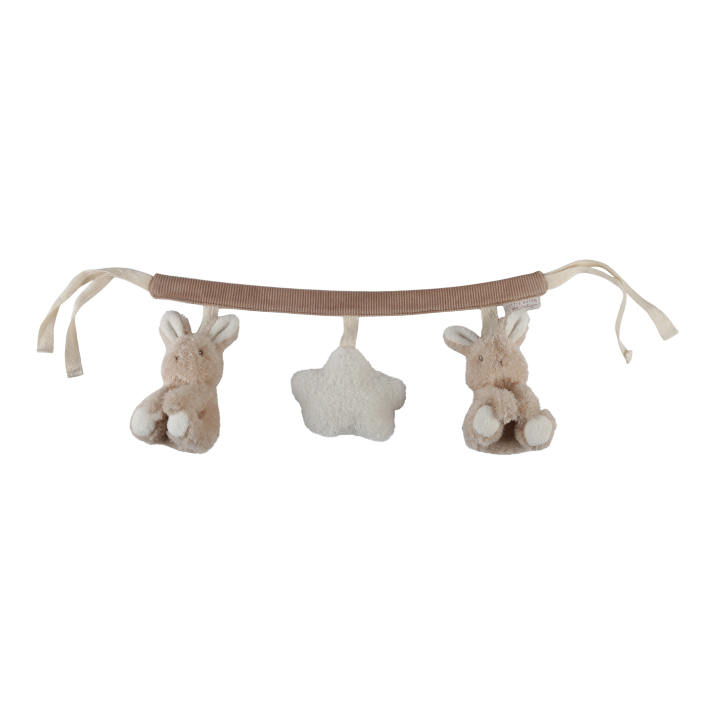 Cette adorable chaîne de landau avec ces jolis peluches, thème lapins, est le parfait accessoire aux promenades de bébé.