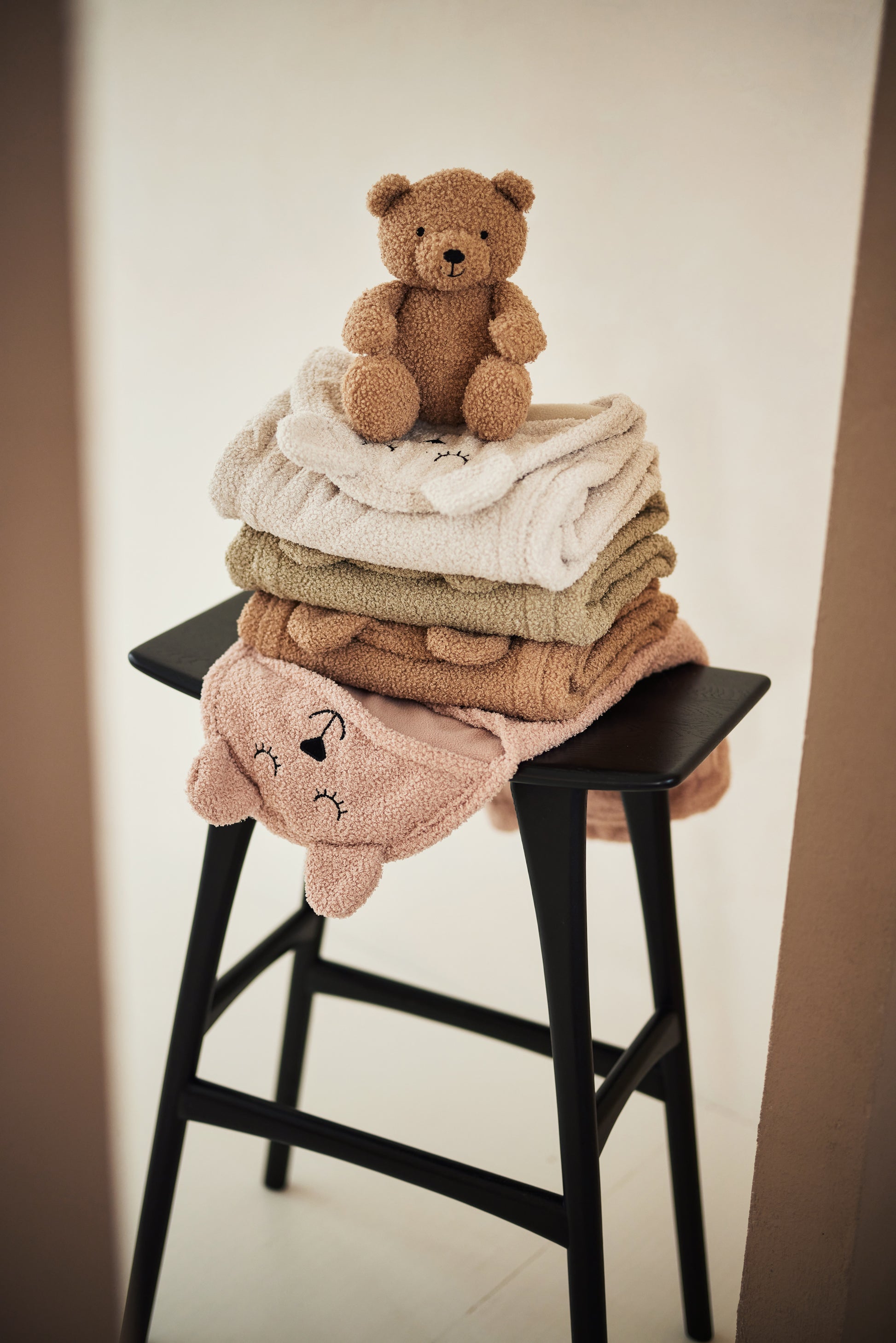 Avec son bonnet et ses petites oreilles impossible de ne pas craquer, de plus la tête reste au chaud lorsque le siège auto est sorti ou en promenade.
