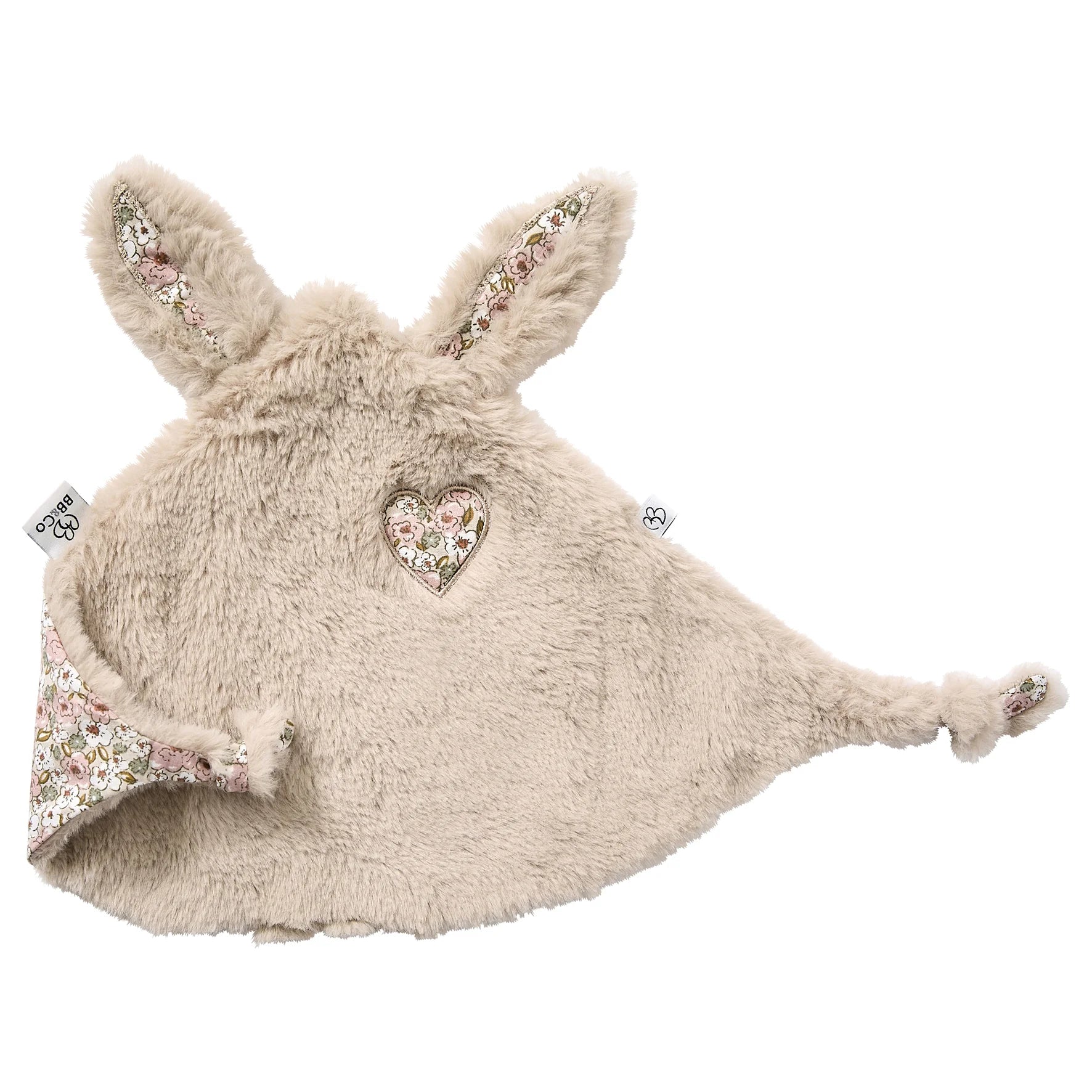 Un doudou plat tout doux avec des oreilles de lapin pour faciliter la prise en main par bébé.