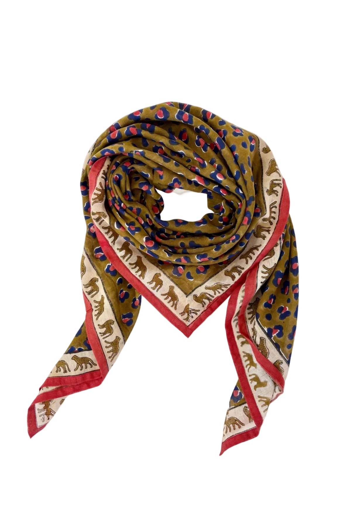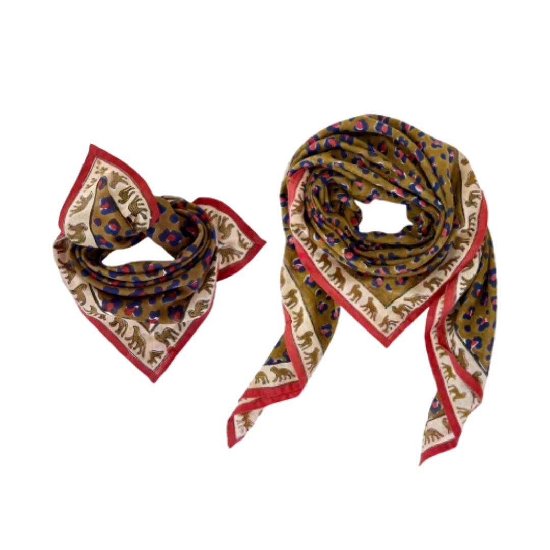 Ce foulard est confectionné de manière artisanale grâce à la technique indienne du block-print. Ses couleurs sont réalisées à partir de pigments naturels. Cette confection manuelle peut entraîner certaines "irrégularités" dont nous aimons le charme. Chaque collection de foulards est unique, il est impossible d'obtenir les mêmes colorations d'une série à une autre. En effet, les couleurs sont réalisées à partir de pigments naturels, le séchage des tissus se fait à l'extérieur et dépend de la météo. Pour les personnes qui ont déjà ces modèles et veulent les racheter, sachez que les couleurs peuvent différer.