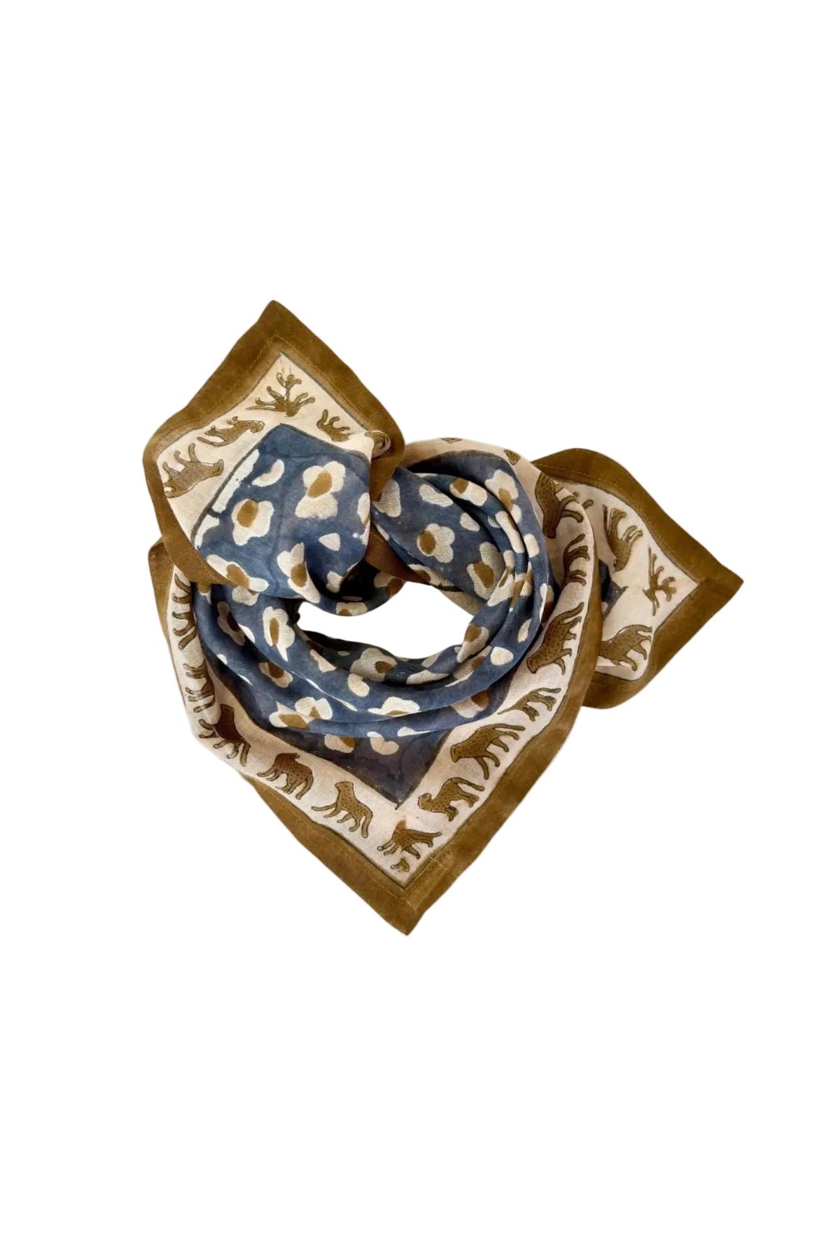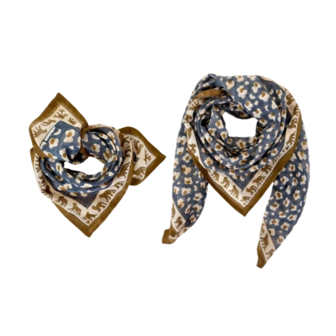 Ce foulard est confectionné de manière artisanale grâce à la technique indienne du block-print. Ses couleurs sont réalisées à partir de pigments naturels. Cette confection manuelle peut entraîner certaines "irrégularités" dont nous aimons le charme. Chaque collection de foulards est unique, il est impossible d'obtenir les mêmes colorations d'une série à une autre. En effet, les couleurs sont réalisées à partir de pigments naturels, le séchage des tissus se fait à l'extérieur et dépend de la météo. Pour les personnes qui ont déjà ces modèles et veulent les racheter, sachez que les couleurs peuvent différer.