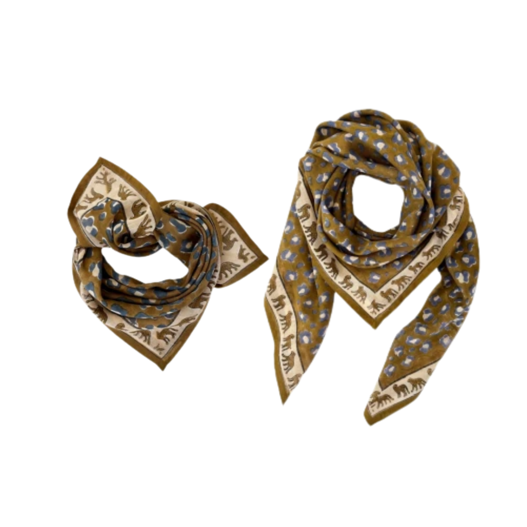 Ce foulard est confectionné de manière artisanale grâce à la technique indienne du block-print. Ses couleurs sont réalisées à partir de pigments naturels. Cette confection manuelle peut entraîner certaines "irrégularités" dont nous aimons le charme. Chaque collection de foulards est unique, il est impossible d'obtenir les mêmes colorations d'une série à une autre. En effet, les couleurs sont réalisées à partir de pigments naturels, le séchage des tissus se fait à l'extérieur et dépend de la météo. Pour les personnes qui ont déjà ces modèles et veulent les racheter, sachez que les couleurs peuvent différer.