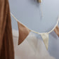 Au total, 6 fanions ornent la ligne : 3 de couleur biscuit et 3 de couleur ivoire. Des deux côtés, vous trouverez une ficelle de 20 cm pour accrocher la ligne de fanions. La touche de décoration dans la chambre de bébé !
