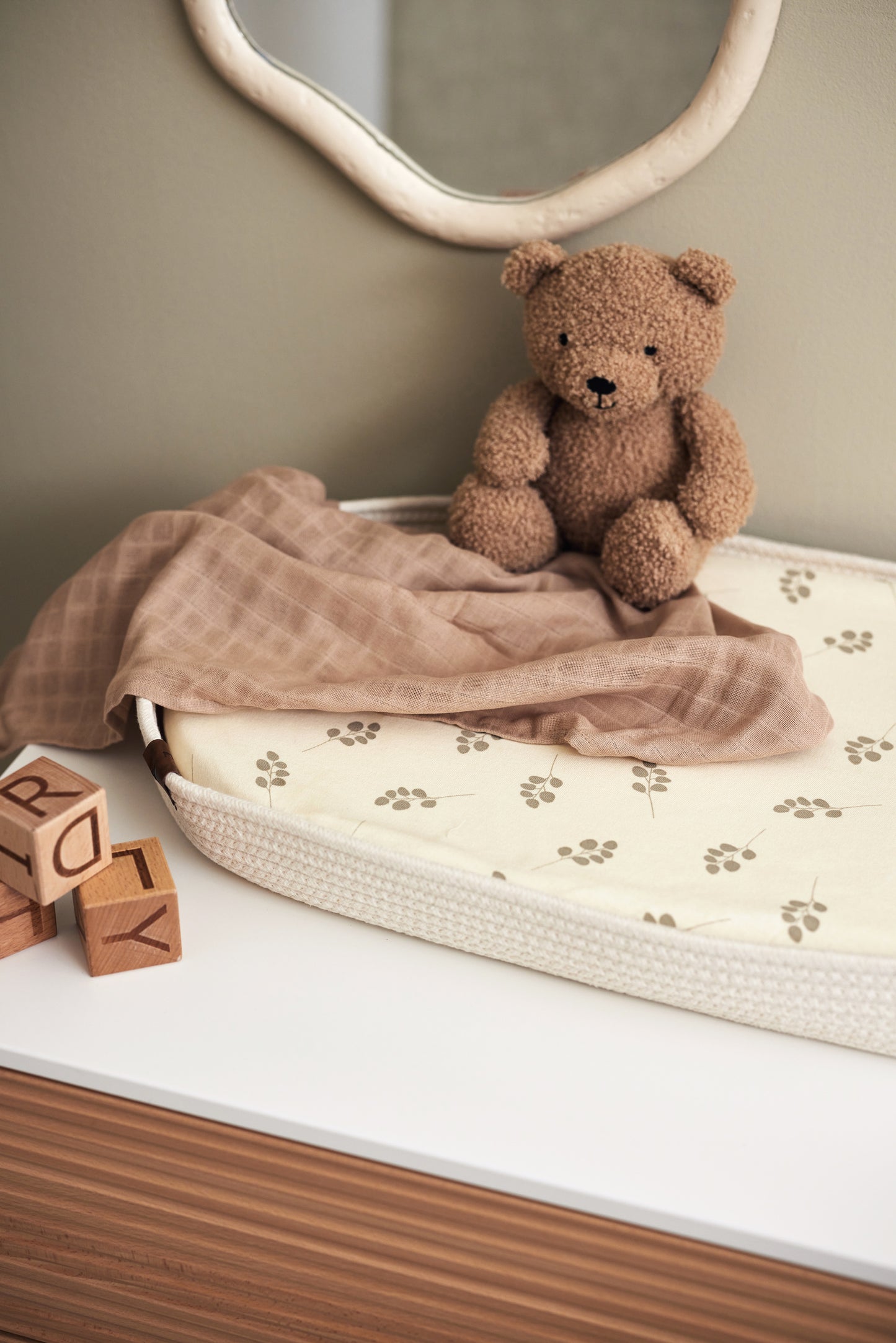 Une adorable housse en jersey qui s'adapte parfaitement autour du matelas à langer et qui est le basique le plus pratique du trousseau bébé.