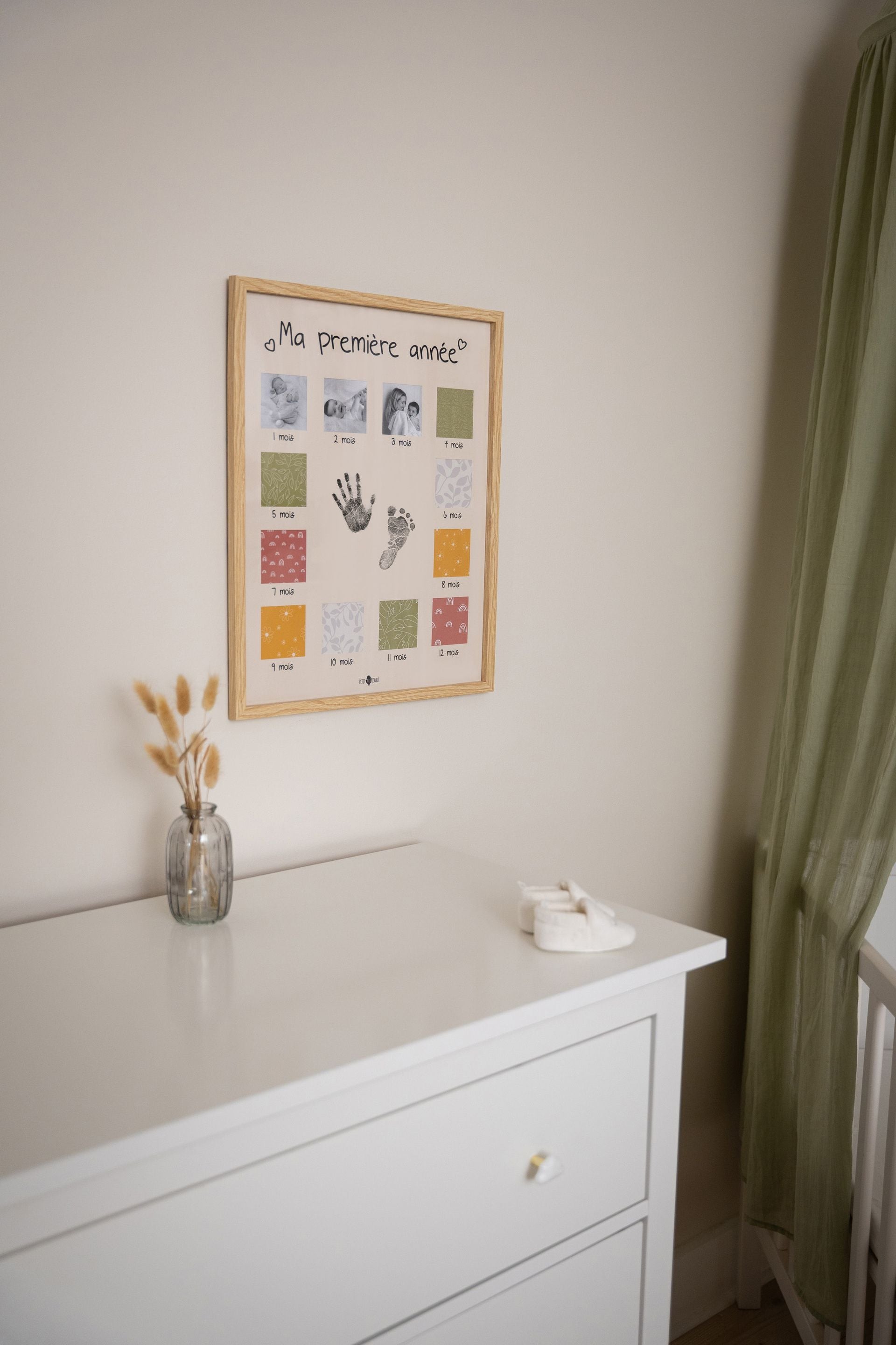 Le Cadre "Ma première année" permet de suivre le développement de bébé mois par mois et d'afficher fièrement les photos de son évolution sur un an.