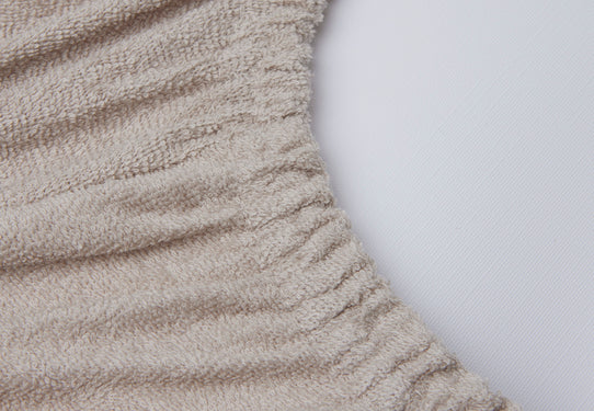 Le tissu doux en éponge ainsi que les bords élastiqués permettent à la housse de bien rester en place sur le matelas pour plus de sécurité. Sans housse, le coussin à langer est assez froid et pas très confortable.