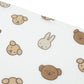L'ensemble comprend 3 carrés de gaze de coton au célèbre imprimé Miffy avec ses amis.