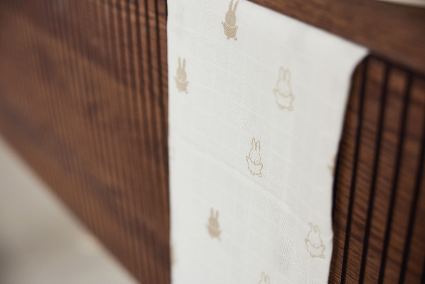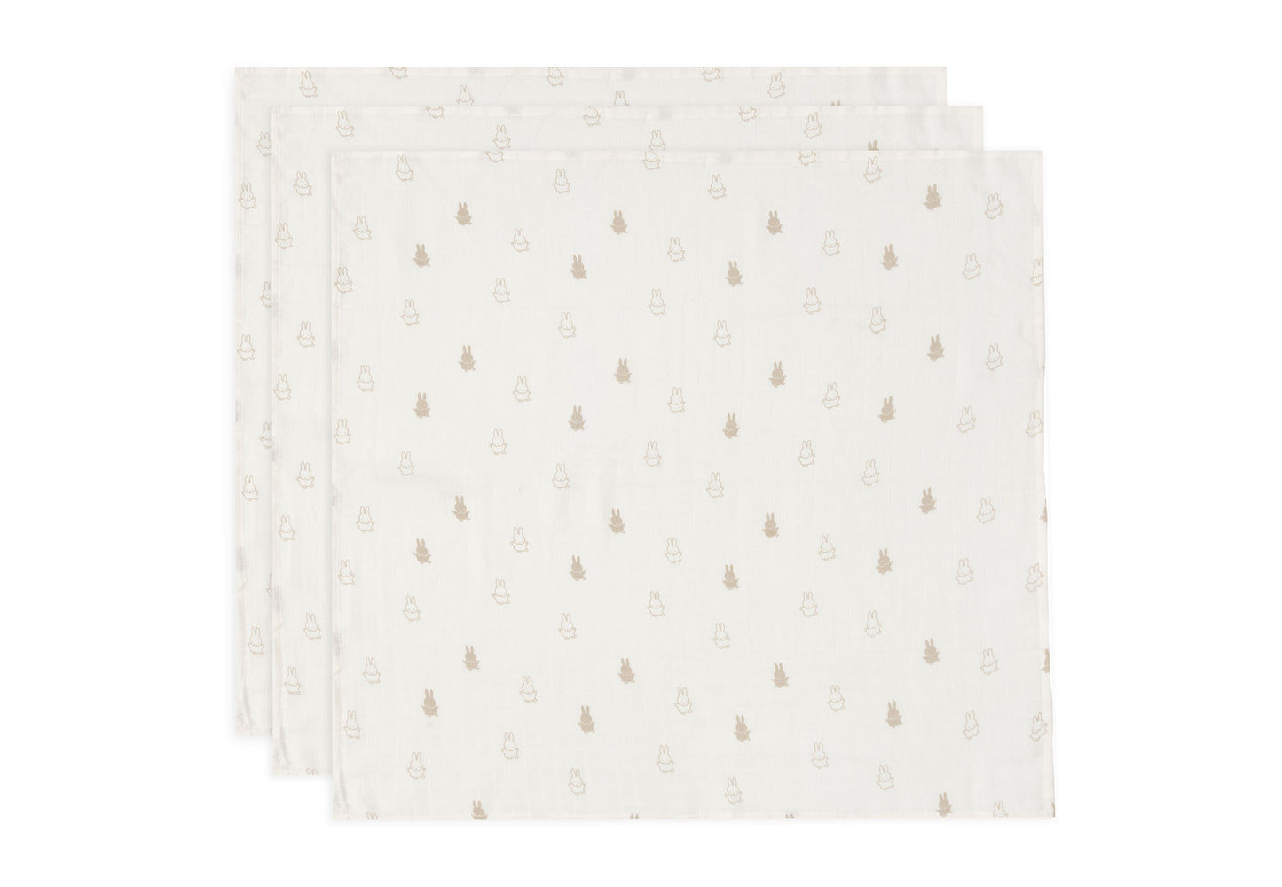 L'ensemble comprend 3 carrés de gaze de coton au célèbre imprimé Miffy.