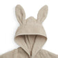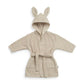 Un adorable peignoir en éponge avec de petites oreilles de lapin sur la capuche.