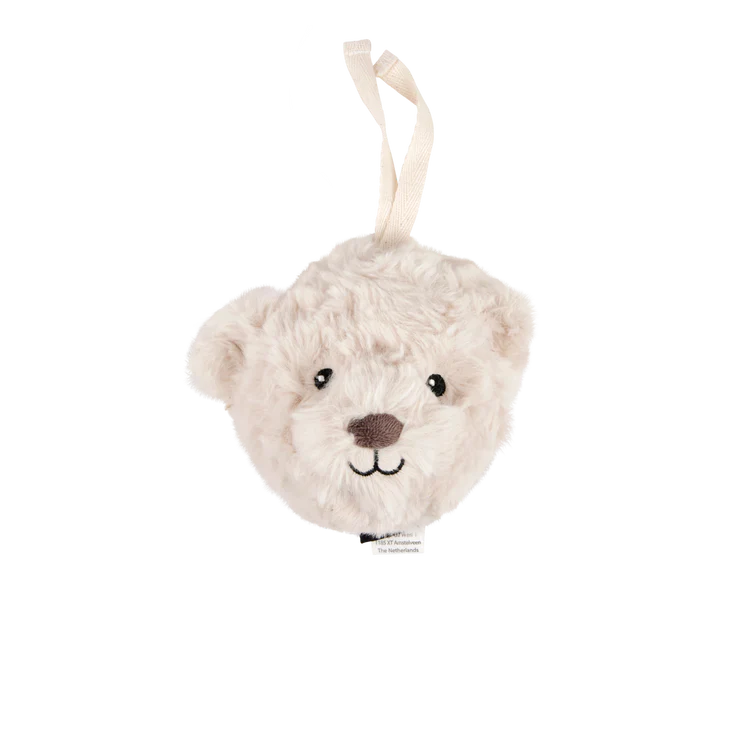 Vous pouvez facilement attacher la tête d’ours au Maxi Cosi ou à la poussette à l’aide d’une ficelle. Le boîtier est facile à manipuler grâce à un grand bouton pour rapidement allumer, régler le son et le volume.