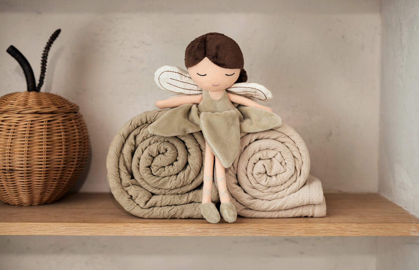 Petite peluche fée toute douce qui emportera votre enfant vers de doux et merveilleux rêves. Elle deviendra la parfaite première amie de votre tout-petit. A câliner sans modération.