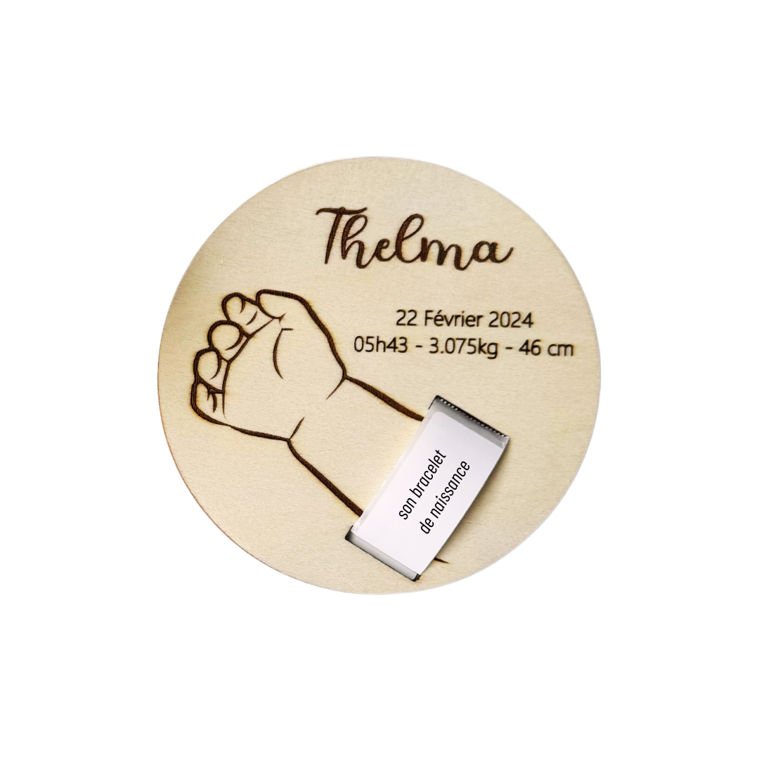 - 2 encoches pour passage du bracelet de naissance (2 tailles)